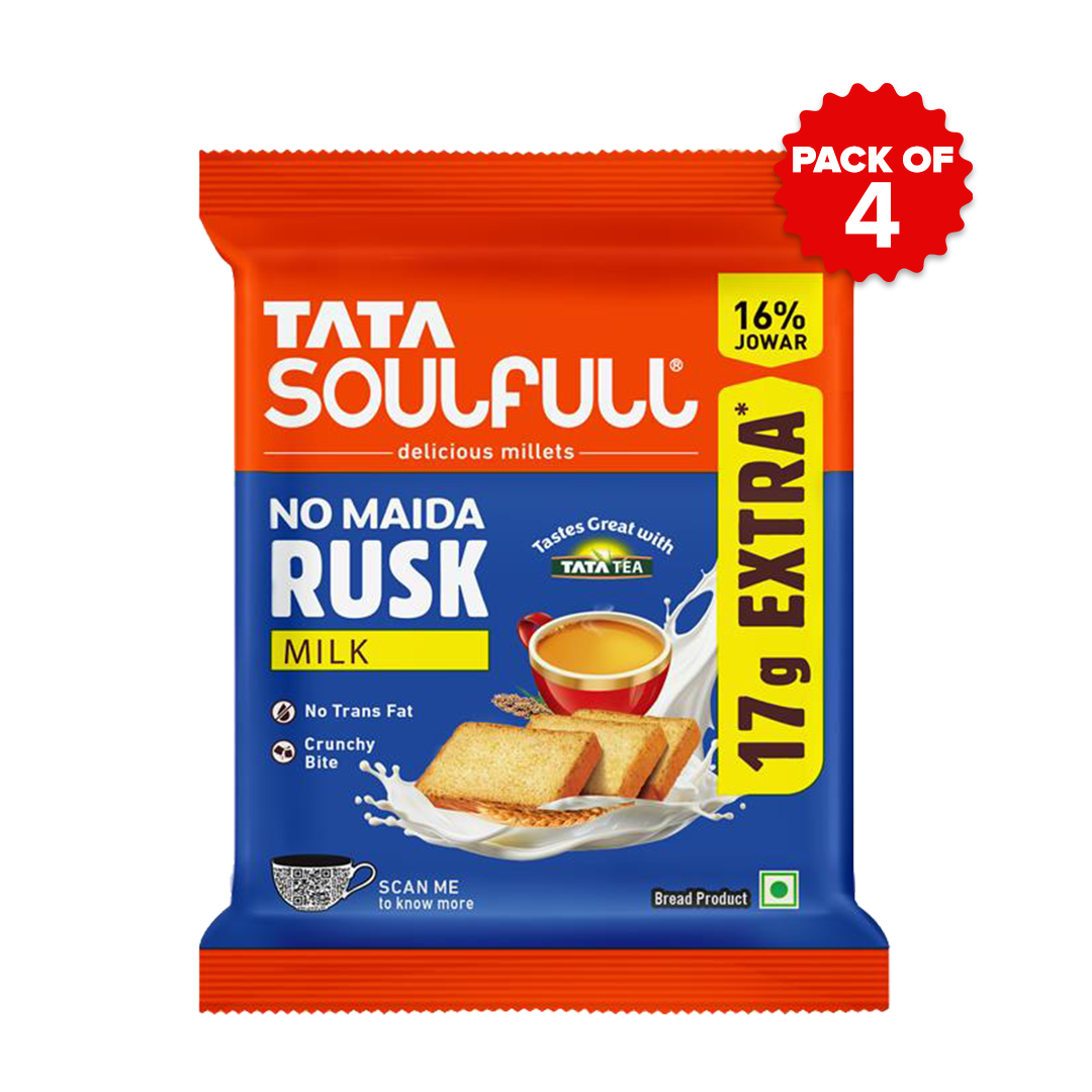 Tata Soulfull’s No Maida Rusk marks a significant shift in snacking habits by offering a healthier alternative to conventional rusks, which are typically made with maida. By using whole wheat atta and 16% jowar, this rusk is rich in fiber, essential nutrients*, crunchier in bite making it a smarter choice both interms of taste and health. (*Protein & Fiber)